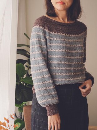 Gloria Pullover is worked seamlessly from the top-down with folded neckline, cuffs and hem. And there are two options available for the cuff style.