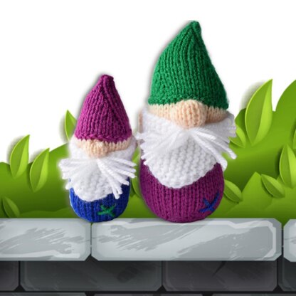 These little garden Gnomes are quick knitting projects: use them to decorate your garden or window box. Both are worked predominantly in stockinette with garter stitch beards, and the smaller gnome has a knitted bobble nose. Designed by Amanda Berry @fluffandfuzz, the gnomes are knitted in acrylic DK yarns on single pointed needles (not in the round). For confident beginners and above, other techniques used include casting on and off, knits, purls, increases and decreases, and seaming to finish.