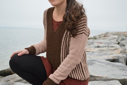 The Good Day Sweater is a pullover inspired by my popular Good Day Teepattern. The design is a modular knit worked in pieces. The sweater is knit in garter stitch throughout featuring stripes on the front sides and back pieces. It features a fun, angled front lower hem. The front and back center panels are first worked flat, then stitches are picked up on the edges and the side panels are worked outward with some simple shaping and striped rows of color. The front and back pieces are seamed and then the sleeves are picked up and worked outward from the body in the round. With the simple garter stitch and minimal finishing this is a great beginner garment! Knit up in Retrosaria’s Joao yarn, a rustic sport weight yarn in gorgeous earthy shades. I named this design as a reminder to the pessimist side of me that it’s always a good day for a good day!