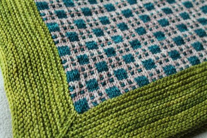 This modern blanket uses a slipped-stitch colorwork pattern to create eye-catching pops of color and baby-friendly texture without the need to juggle more than one color per row.
