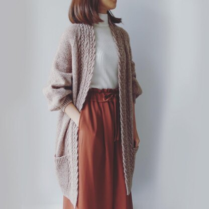 The cardigan is worked seamlessly top-down in one piece.