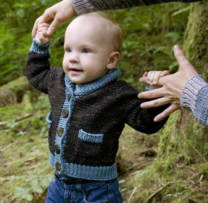 And YES, despite reasonable common-sense notions, babies DO require pockets to store their tiny little pipes, and patches to prevent them from wearing holes through the elbows of their cardigans after years of use! Make an adorable matching sweater for yourself too.