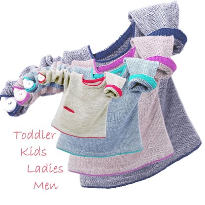 Women’s 8 sizes (Finished Bust: 82-141cm / 32.75-56.25”) – With a flattering, slightly deeper neckline, narrower shoulders and options for bust darts, and 6 options for the shaping (straight, A-line, 4 waistshaping and hip widht options)