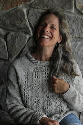 Bottom up construction and a modified raglan yoke that allows for some lovely detail at center front and back neckline, paired with lace and garter texture! Grey Ghost is a easy wearing, sweatshirt kind of sweater. Knit seamlessly from the bottom up, and easy to modify for fit. If substituting yarn, choose a woolen spun fiber without much weight or drape that knits to gauge. If between sizes, choose the smaller one and add width or depth as needed.