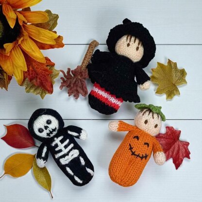 All three patterns are included in this set- Witch with her broom. Skeleton doll and pumpkin. Pumpkin doll.