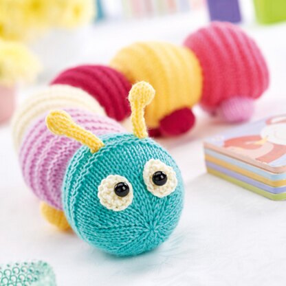 Use a rainbow of colour to knit a cuddly caterpillar. This big toy also doubles up as a handy draught excluder. Designed by Amanda Berry @fluffandfuzz, the caterpillar is knitted in acrylic aran yarns on single pointed needles (not in the round). A combination of knits and purls gives the ribbed texture to the caterpillar’s body. For confident beginners and above, other techniques used include casting on and off, knits, purls, work a kfb increase and k2tog decrease, knit stripes, and seaming to finish.