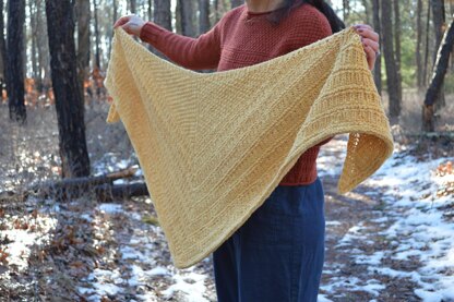 The Happy Dance Shawl is a simple and sweet shawl perfect for relaxing, meditative knitting. Knit from the top down, this traditional triangle-shaped shawl combines knit and purl moss stitch with garter and ribbed rows, and a smooth and stretchy I-cord bind off. I designed this shawl to showcase the beautiful, and incredibly soft Catskill Merino wool yarn it is knit in. The combination of textures and easy stitches make the Happy Dance Shawl a joy to knit and wear!
