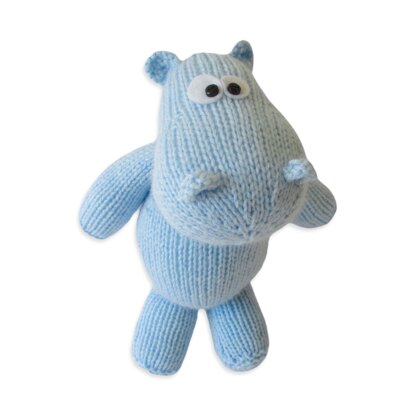Harry the Hippo is knitted for hugs!! This cuddly hippo is knitted predominantly in stockinette, with garter stitch feet. Designed by Amanda Berry @fluffandfuzz, the hippo is knitted in acrylic DK yarns on single pointed needles (not in the round). For confident beginners and above, other techniques used include casting on and off, knits, purls, increases and decreases, and seaming to finish.
