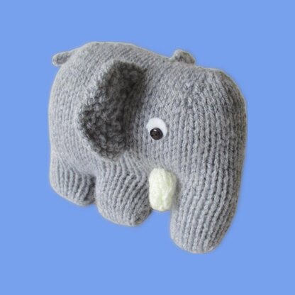 For this little elephant, the body is knitted in one piece, and the ears and tail knitted separately and sewn in place. Designed by Amanda Berry @fluffandfuzz, the toys are knitted in acrylic DK yarns on single pointed needles (not in the round). The tail is an i-cord tube worked on two DPNs. This pattern incorporates a provisional cast on and Kitchener stitch grafting. For confident beginners and above, other techniques used include casting on and off, knits, purls, increases and decreases, and seaming to finish.