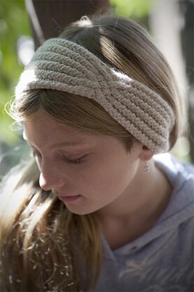 This headband can be worn turban style or with the twist positioned at the side, as shown in the photo. While it may look difficult, it is very easy and has both written and very clear charted instructions. Only the twisted portion requires a cable needle. The rest of the headband requires only knit, purl and slipped stitches. This project can be completed in two evenings.