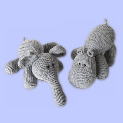 Hippo and Elephant are best friends and love to lounge around. Knitted predominantly in stockinette with increases and decreases shaping, both toys have floppy legs and little i-cord tails. Designed by Amanda Berry @fluffandfuzz, the toys are knitted in acrylic DK yarn on single pointed needles (not in the round), and the i-cord tails are worked on two DPNs. For confident beginners and above, other techniques used include casting on and off, knits, purls, increases and decreases, and seaming to finish.