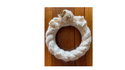 Quick to knit, this cabled wreath can be finished as a wreath, centerpiece or headband. Add rose and holly leaves in contrasting colors if desires, with a little bling from metallic yarn! Happy holidays!