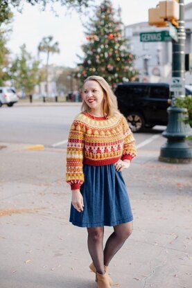 What's more fun than a festive sweater? This sweater is fully customizable: it contains charts not featured in the sweater sample so that you can celebrate Hanukkah, Christmas, or just the winter season. Instructions include total rounds needed for each section of the sweater so that you can play around with chart locations and which ones you feature. This yoked pullover is worked from the top down, seamlessly; add or subtract body & sleeve length as desired for the fit of your dreams!