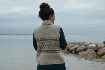 The Hollis Vest is a chunky color-work vest perfect for layering in crisp weather. Knit from the bottom up, flat, the design features a band of stranded color-work X’s and horizontal stripes. Simple armhole and neckline shaping are worked for a tailored fit in the bust. Afterwards, stitches are picked up along the fronts and neckline and a folded shawl ribbed collar is worked for a snug, cozy fit. An I-cord bind off is worked on the collar for a smooth, nicely finished edging. Knit up in just a few skeins of Purl Soho’s Big Good Wool, the Hollis Vest is the perfect quick-knit layering piece for your winter wardrobe!