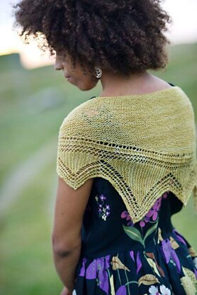 Hömin Shawl (Evening Twilight): On long summer evenings in Shetland the twilight hues of gold and amber cast highlights and shadows across the grassland, illuminating the wildflowers and heather. Long walks taken in that magical atmosphere inspired this shawl. The clean lines, simple lace edging and effortless garter stitch make this a calming piece of knitting.