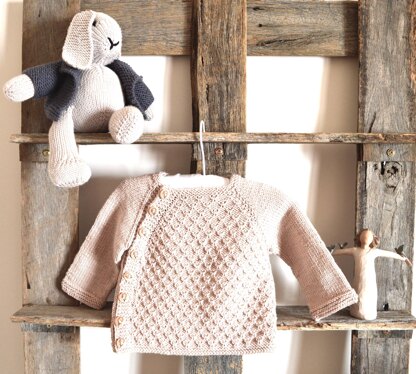 This little top is adorned with a simple but striking Bumblebee stitch on the Front. The Back and Sleeves are worked in stocking stitch. Simple construction, worked from the top down, with buttoned side opening, no seaming required. Written pattern instructions, plus schematic, and charts for the body and yoke. Perfect little top for baby, and toddlers.