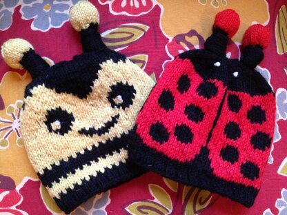 Quick to knit in worsted weight yarn, with 2 bobbing antennae on top. Antennae are knit with DPN's, the bulb end of the antennae are stuffed with little bits of leftover yarn. The 3 inch stalks are knotted to finish them off. It makes them stand up with no wires or extra support.