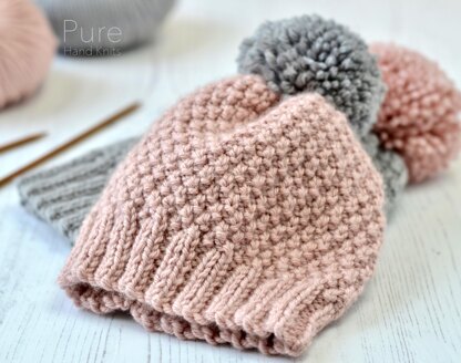 The lush texture on this easy-knit bobble hat is simple to knit! This beautiful texture is a repeat pattern of simple knit and purl stitches, known as Double Moss Stitch.