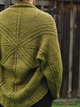 **Hug You-Me is an easy-to-wear woolly hug… wrap up yourself or someone you love!**Hug You-Me has an addictive construction that will keep you knitting. The shrug starts from the center out. First, a square is worked in the round for the back. Each sleeve is then created by working a flat panel out to the cuff. Next, stitches are picked up along the sleeve and a panel is worked to join the sleeve into the round. Finally, stitches are picked up all the way around the inside of the shrug to pull it all together with a collar that has subtle short row shaping.