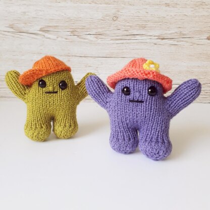 Work the Hugglings from the feet up: knit two legs, join them, then finish the body, following the row-by-row instructions.