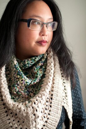 Size Shawl: 72” / 183 cm along top edge, 24” / 60 cm deep at centre point Cowl: 22” / 56 cm circumference, 14” / 36 cm deep at point