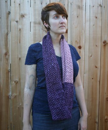 Crocheted lace and colorblocking come together in this fashionable and quick cowl. Worked flat and then seamed into a moëbius, it can be worn loose or wrapped up for cozy comfort. The simple stitch is both written and charted, making this an easy introduction to lace work.