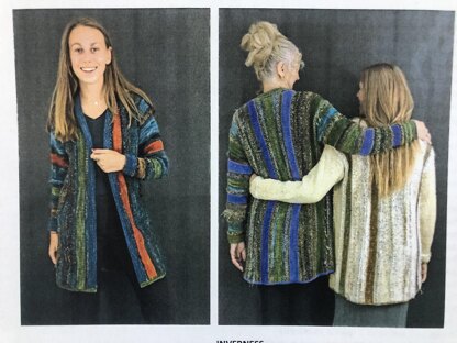 Luxury in this short jacket, a show stopper Worked side to side with line going vertically, adds length to ones body Each section changes and each yarn add to the pleasure of making this garment. I have made 4 different color ways, the antique color has solid sleeves, should you choose to make the sleeves in one color, you will need 4 additional "A" colors, and the other yarn in the size small.