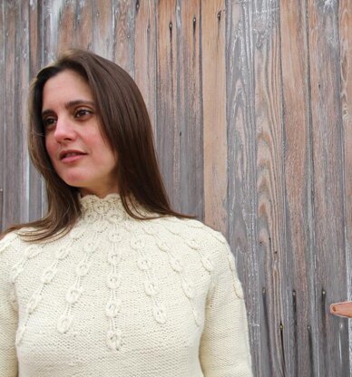 Iota is a top-down seamless yoke sweater. It begins with the Iota Stitch worked around to create a mock turtle neck. The yoke grows as you work increases in between the stitch motifs. The rest of the sweater is then knit in reverse stockinette stitch with optional waist shaping. Available as part of the Iota Collection, or individually.