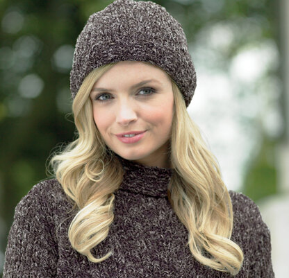 Sweater and Hat by James C. Brett creates a gorgeous mock turtleneck and matching hat in their super bulky Flutterby Animal Prints. This self-patterning yarns gives your projects beautiful texture and works up into a soft and comfortable fabric. Worked flat and seamed both pieces are great traveling companions!