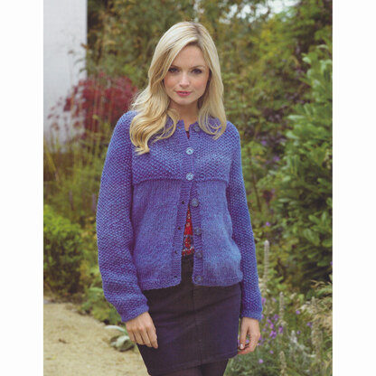 A classic design, James C. Brett’s Jacket features a moss stitch pattern and simple bottom up construction. This cozy sweater is knit in Marble Chunky Glamour, a shimmery bulky weight yarn that works up quickly.