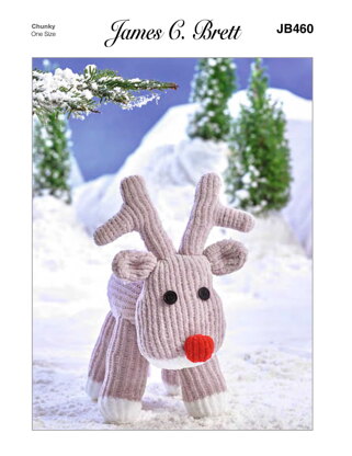 James C. Brett JB460 Rudolph is a lovely stuffed toy that will knit up quickly for your little one or as a gift using Flutterby Chunky. James C. Brett Flutterby Chunky is a ridiculously soft 100% polyester yarn in sweet baby pastel colors. This machine washable, super bulky yarn is perfect for baby items and so snuggly!