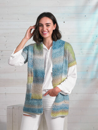 This short sleeve, open cardigan is made in James C. Brett Marble Chunky making it a quick knit! Perfect for when you want quick gratification. This cardigan is ideal to throw over any outfit to add a little color!