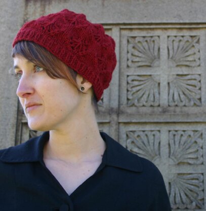 This easy to wear hat features a textured leaf stitch pattern and knits up very quickly. Choose a size that is an inch or two larger than your actual head circumference to get a slouchy effect; the ribbed band will stay snug around your head.