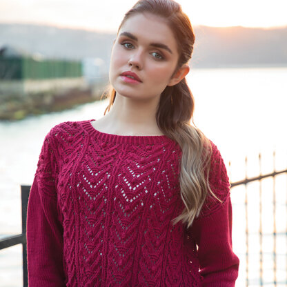 Jody Long Emma is an elegant and versatile pullover that features an easy drop-shoulder fit and a beautiful lace and cable pattern. Knit in Summer Delight, Emma will be an easy choice to wear from spring through fall thanks to the smooth blend of organic cotton and cashmere. This pullover is knit flat in pieces from the bottom up and seamed with the neck band knit in the round during finishing. Knit Emma for a sweater that will take you from work to weekend with ease! Lace and cable pattern is charted only.