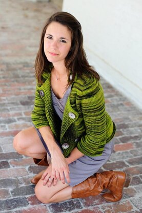 Johanna is a double breasted cardigan featuring ¾-length sleeves and loads of detail. It’s worked top-down with seamless, set-in sleeves. The defined waist and flare at the cuff and hip give it a tailored and flattering fit. Pop the collar or leave it buttoned, the jacket can be dressed up or down.