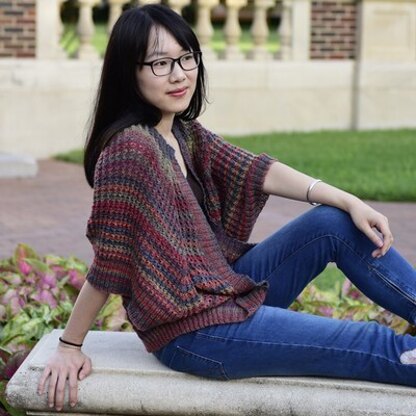 Jojoland Clara is knit top down in one piece and then stitches are picked up and knit for the front bands and neckline. Jojoland Melody Superwash creates a beautiful and colorful sweater with its long color shifts adding interest to the allover mock-cable stitch pattern. Stitch pattern is written out only.