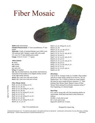 Jojoland Fiber Mosaic PDF is a Knitting pattern by Lijuan Jing, available as a Downloadable PDF. Super fun to make, this pattern could be your next masterpiece!