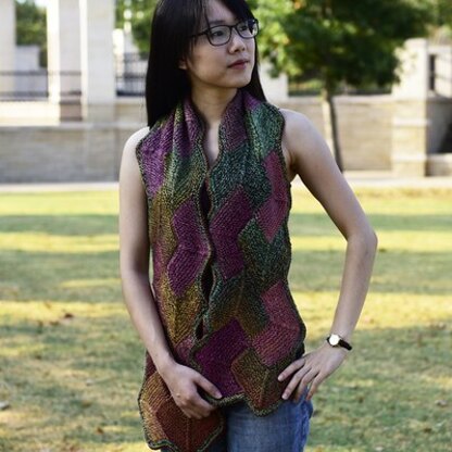 The Jojoland Rhythm Hidden Square scarf is crafted by knitting half mitered squares that are joined together as you go. You can knit this fun scarf with one or two color of Jojoland Rhythm Superwash and watch the interplay of colors develop as your scarf grows. Once the squares are completed, a narrow garter stitch border provides a beautiful finishing touch.