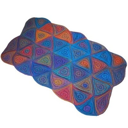Jojoland Vortex is a great squishy garter stitch blanket knit out of individual joined as you go triangles! Knit using Jojoland Rhythm Superwash makes every blanket unique with its beautiful color shifts. Each triangle of the Vortex blanket is knit in the round from the outside edges in, with subsequent triangles built of previous ones.