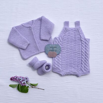 This is a unisex Baby Knitting Pattern for a simple little Romper, simple garter stitch cardigan and booties in two sizes, 0-3 months & 3-6 months. Both sizes are made using DK yarn but with different size needles. The 0-3 mth is made using DK yarn with 3.25mm & 4mm & the 3-6mth size is made using DK yarn with 3.75mm & 4.5mm needles. You will need 200g of DK yarn for each size. The cardigan and hats from my 'Ace' pattern will match the romper pattern. I made the Romper using King Cole Baby Pure and the cardigan with Sirdar Snuggly DK.