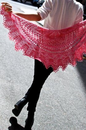 Although this is a shawl, it is important to obtain gauge in order to avoid running out of yarn. Adjust needle size as necessary to obtain gauge. The gauge given in the pattern is a blocked gauge.