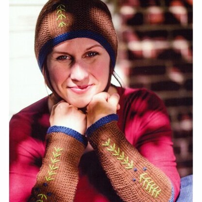 Embroidery detail elevates Juniper Moon Farm Deodar - a simple hat and arm warmer set - into something adorable. The embroidery is reminiscent of a Deodar, which is a kind of East Indian cedar tree.