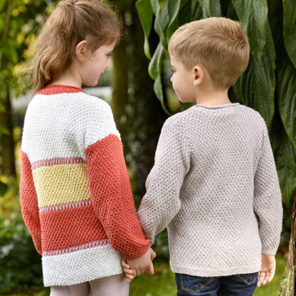 Juniper Moon Farm Ellie is a cute and comfy pullover for kids with options for a single color set-in sleeve or a four color drop-shoulder fit. Either choice will be a home run with special kids in your life knit in Juniper Moon Farm Cirrus, a lightweight chainette yarn made from soft Mako cotton. With a debut palette of soothing neutrals and pastels, it's easy to mix and match shades for multicolor projects in Cirrus. This versatile sweater will also work up beautifully in multicolor Cirrus Rainbow on its own or paired with solid Cirrus! Ellie is knit flat in pieced form the bottom up and seamed, giving structure to the finished garment.