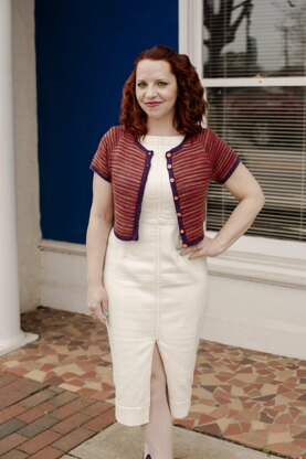 Lightweight stripes are the perfect addition to any mild weather situation. This top-down, seamless raglan-style knit features a myriad of options for customization. Choose a cropped or longer length sweater, short or long sleeves and if you’d like, you can even swap out the classic sleeves with the puffy shape from the Meebles pullover, as these two sweaters were constructed with interchangeable options. Optional waist shaping is also provided for both lengths & a series of linked tutorials make this design extra accessible. Fifteen sizes are provided in this design so that you can get an excellent fit. Sweater is shown in Size 3 fitted with negative ease at the chest; model’s chest is 1”/2.5 cm larger than finished garment.
