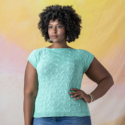 Yarn Requirements: 4 (5, 5, 6, 6, 7, 7) hanks Kelbourne Woolens Mojave (60% Cotton/40% Linen; 50g/185yds) shown in 333 Seafoam Green