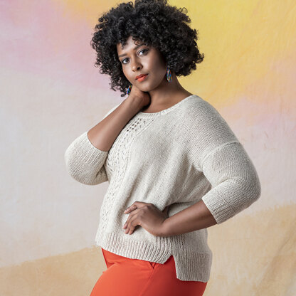 Yarn Requirements: 6 (7, 7, 8, 8, 9, 9, 10) hanks Kelbourne Woolens Mojave (60% Cotton/40% Linen; 50g/185yds) shown in 105 Natural