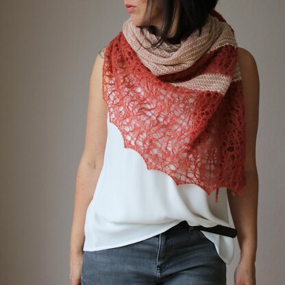 Airy lace pairs with contrast sections of stockinette and garter stripes for a stunning visual effect, and the yarn combination is simply divine!