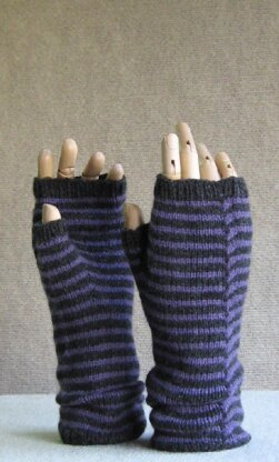 Don't hide your jogs ... accentuate them in these classicly striped fingerless mitts, snug and extra long hand for warmth, slouchy forearm for style and comfort, and a thumb that is part welt and part flap for a lovely fit.