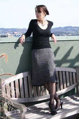 Kira K's Bell Curve Skirt is both sexy and comfortable to wear. Knit in the round from the waistband down, it's a quick knit with minimal finishing. The decorative star patterns separating the panels are extrapolated from the star stitch border, and sneakily hide the increases for a smooth line. Choose a yarn that has both body and stretch so that it will skim your curves without clinging or sagging. The slight A-line with flared hem will look good on a wide variety of figures.
