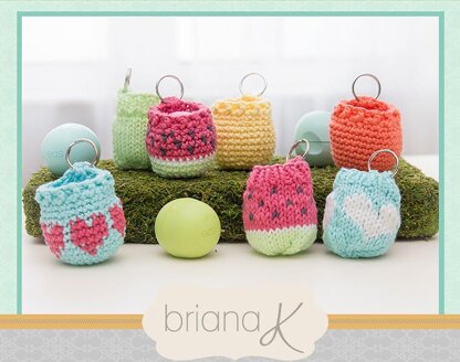 Yardage: Approx. 26 yards total to make one lip balm holder, so only a small amount of each color. Gauge: (with 3.5 mm needles) 6 sts x 8 rows = 1 inch x 1 inch